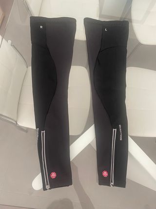 Perneras de ciclismo Shimano en talla M. Diseñadas para ofrecer comodidad y protección. - Color negro. - Detalle de cremallera en el tobillo. - Logo de Shimano en la parte inferior. - Inscripción WIND STOPPER en la zona del tobillo.