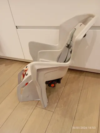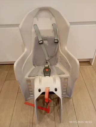 Silla portabebé de la marca Polisport, diseñada para ser instalada en bicicletas. - Material de plástico resistente. - Incluye arneses de seguridad. - Diseño ergonómico para el confort del niño. - Color blanco y gris.