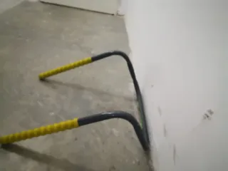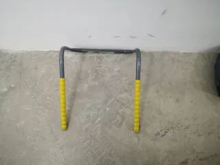 Soporte para colgar bicicletas en la pared. Ideal para organizar tu espacio. - Estructura metálica resistente. - Mangos con agarre texturizado amarillo.