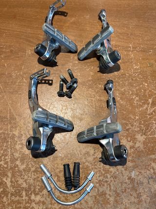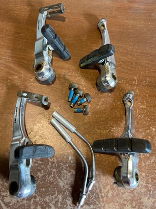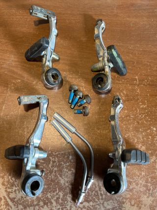 Conjunto de frenos cantilever para bicicleta, completo y listo para instalar - Incluye dos unidades de frenos - Pastillas de freno en buen estado Más piezas en mi perfil
