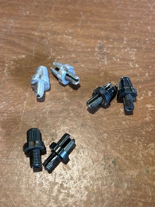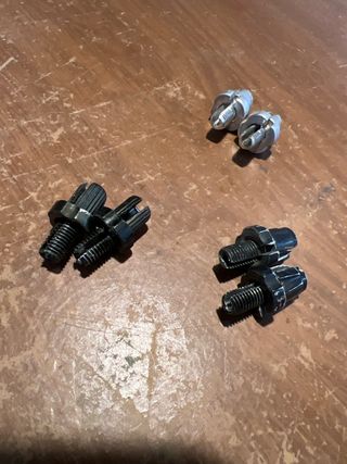 Conjunto de reguladores de freno para bicicleta. - Incluye 4 reguladores de freno negros. - Incluye 2 reguladores de freno plateados. - Material : aluminio