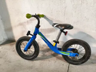 Bicicleta de equilibrio Giant en color azul, ideal para los más pequeños. - Diseño deportivo con detalles en verde. - Ruedas de goma. - Puños de goma para un mejor agarre. - Sillín ajustable.