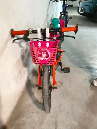 Bicicleta infantil de la marca Trek, ideal para los más pequeños. Su llamativo color naranja la hace muy visible. - Cesta delantera rosa. - Sillita trasera rosa. - Ruedines incluidos.