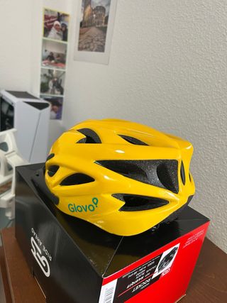 Casco de ciclismo amarillo con el logo de Glovo. - Diseño aerodinámico. - Múltiples ventilaciones.