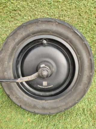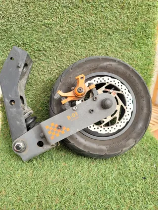 Rueda de repuesto para e-scooter modelo B-01. Incluye sistema de freno. Tiene rayones propios del uso. - Neumático de nylon. - Medida 90/65-6.5. - Freno de disco.