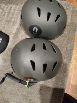 Dos cascos de protección en color gris, ideales para patinete o bicicleta. - Diseño moderno y seguro. - Talla única ajustable.