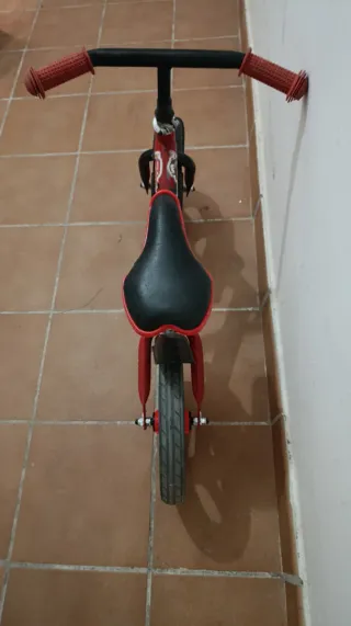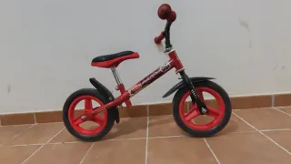 Bicicleta de aprendizaje para niños, ideal para iniciarse en el mundo de las dos ruedas. Su diseño sin pedales fomenta el equilibrio y la coordinación. - Color rojo llamativo. - Diseño inspirado en Rayo McQueen. - Ruedas negras con detalles rojos. - Asiento ajustable en altura.