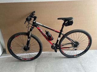 Bicicleta de montaña MMR Kendo en color negro, rojo y blanco. Ideal para senderos y rutas. - Cuadro de aluminio. - Horquilla Rock Shox. - Frenos de disco. - Ruedas Schwalbe Rapid Rob.29