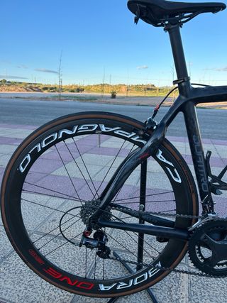 Bicicleta de carretera Pinarello FP Quattro con ruedas Campagnolo Bora One 50. - Ruedas perfil Campagnolo Bora 50 con neumáticos continental GP5000 s montados recientemente - bielas carbon Campagnolo Chorus instaladas recientemente -Grupo Campagnolo Centaur Red 10v - Cuadro de carbono. - Ruedas de perfil 50mm. - Diseño deportivo. -Talla 51,5 para ciclistas 1.70-1.75 cms Muy poco uso en perfecto funcionamiento y muy cuidada Se vende sin pedales y con soporte para Garmin