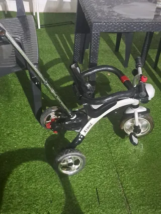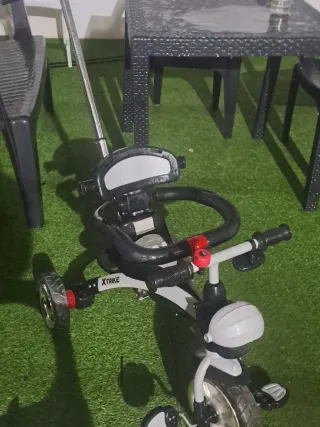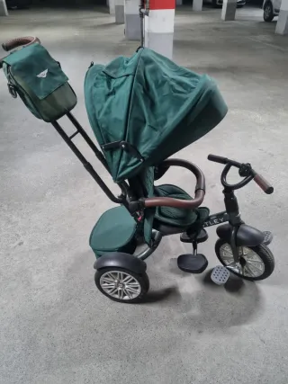 Triciclo de la marca Bentley, diseñado para niños, valorado en mas de 400€, se vende por 150€ por haberse quedado pequeño sin prácticamente uso. - Color verde oscuro. - Capota protectora e impermeable. - Asiento acolchado. -Ruedas inflables. Adecuado a partir de 12 meses , el respaldo se puede ajustar en 2 ángulos diferentes, a partir de los 24 meses el asa de empuje,los reposapies y el protector de seguridad se pueden quitar del triciclo por completo, lo que le permite pedalear al niñ@ por si mism@. A partir de 3 años se pueden eliminar los cinturones y respaldo para convertirse en bicicleta.
