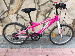 Bicicleta infantil de color rosa, adecuada para niñas a partir de 7 hasta 12 años aproximadamente. Ideal para iniciarse en el ciclismo. Las ruedas son 26 pulgadas.