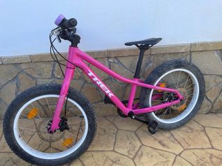Bicicleta infantil Trek Roscoe 20 en color rosa. - Ruedas anchas para mayor estabilidad. - Frenos de disco. - Diseño deportivo.