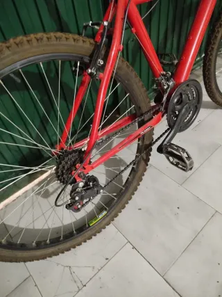 Bicicleta de montaña con transmisión de platos y piñones. - 3 platos delanteros. - 6 piñones traseros.