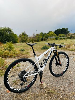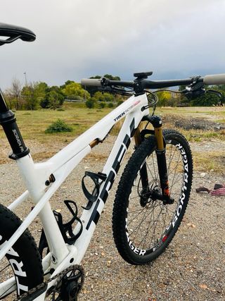 Bicicleta de montaña Trek Supercaliber. 9.8 - M/L - Cuadro Blanco con detalles en marmol. - Manillar integrado RSL - Ruedas Bontrager Kovee elite 23 - Suspensiones Fox Kashima. - Transmision Sram x01 AXS, con bielas x0, potencimetro Quarq. - Frenos XT. La bici esta en estado practicamente nueva. Hay opcion de vender solo el cuadro Negociable
