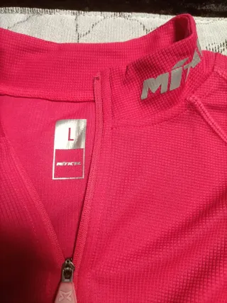 Maillot deportivo de color rosa, talla L. Ideal para actividades deportivas. - Cremallera frontal. - Cuello alto. - Logo de la marca en el cuello.