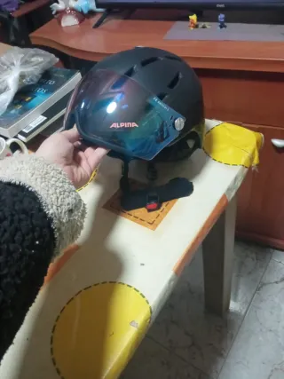 Casco de esquí o snowboard Alpina para niño, con visera integrada. - Color negro. - Visera con acabado reflectante y tintado azul. - Marca: Alpina.