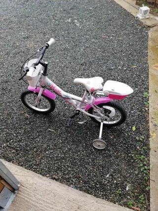 Bicicleta infantil Btwin de 16 pulgadas, ideal para los más pequeños. Su diseño es blanco y cuenta con detalles de personajes. - Ruedas de 16 pulgadas. - Frenos de mano. - Sillín ajustable. - Pedales de plástico. Precio no negociable