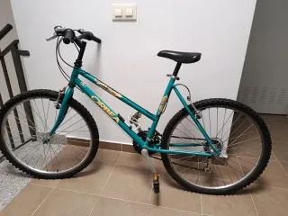 Bicicleta de montaña Orbea en color verde azulado. - Cuadro de aluminio. - Ruedas de 26 pulgadas. - Frenos V-brake. - Cambio Shimano. Se necesita mantenimiento (hinchar rudas, engrasar...)