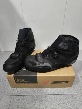 Botas de invierno Sidi Zero Gore-Tex para ciclismo en carretera. Diseñadas para mantener tus pies secos y calientes en condiciones frías y húmedas. Talla 45,( tallan muy pequeño), serían un 44 de cualquier otra marca. - Membrana Gore-Tex. - Cierre micrométrico. - Suela antideslizante.