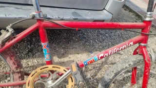 Bicicleta clásica BH California en color rojo. - Cuadro de metal. - Ruedas de goma. - Pedales negros.