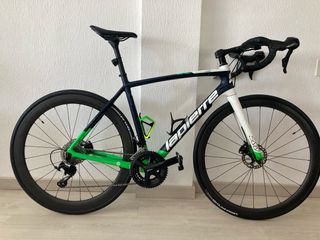 Bicicleta de carretera con cuadro de aluminio, tija y horquilla Oklan de carbono, frenos Miche Performace, llantas Fulcrum Racing, neumáticos Vittoria Rubino Pro, cambios Campagnolo Veloce 10 velocidades y potencia regulable en altura. La bicicleta siempre ha estado bien cuidada y está en muy buen estado