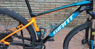 Cambio por remolque de doble eje Bicicleta de montaña Giant de carbono con detalles en naranja y azul. - Cuadro de carbono. - Ruedas Maxxis. - Horquilla RockShox.