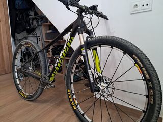Bicicleta Specialized Stumpjumper 29'' de carbono, monoplato, talla 17, ruedas Maxxis tubeless, pedales Shimano xt, horquilla rockshox, frenos de disco Shimano, piñones 11-46, plato Sram 32. Con casette, plato, cadena, eje pedalier y cubierta puestos nuevos. Peso aprox. 12kg. Mantenimientos al día, muy bien cuidada y sin caídas.