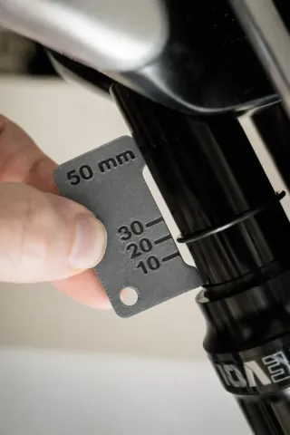 Medidor de SAG para horquillas de suspensión MTB, compatible con los principales fabricantes de horquillas MTBDisponible para longitudes de recorrido de horquilla de 120, 130, 140, 150, 160, 170, 180mmSimplemente selecciona el medidor correcto para el recorrido de tu horquilla y configura rápidamente el porcentaje de SAG deseado