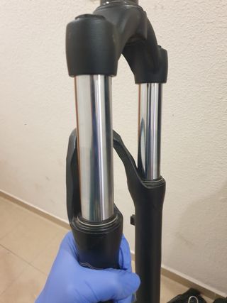 Horquilla rockshox judy rl 130mm (2021) con bloqueo y eje boost 15x110 poco uso (500km +/-), desmontada de una canyon, tubo cónico cortado a 175mm, mantenimiento echo en 2024, sin daños, incluyo cierre, Mejor ver.