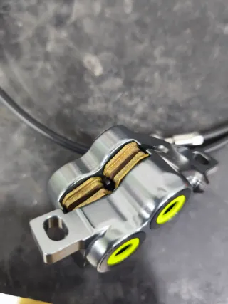 Freno delantero Magura MT7. Tiene alrededor de 600 km, lo entrego con pastillas nuevas. Está en perfecto estado. Por sacar algun defecto, la zona donde se amarra el latiguillo a la horquilla está un poco marcado y en la pinza se ve un pequeño defecto de pintura (ver foto). No afecta para nada al comportamiento.