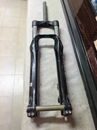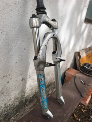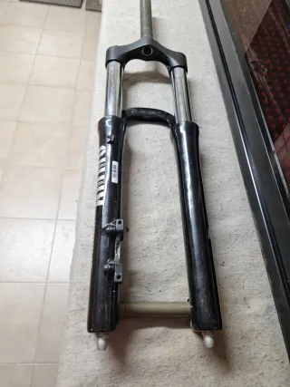 Horquilla de suspensión para bicicleta de 29 pulgadas con llanta. Está usada, pero en buen estado. - Modelo de horquilla para bicicleta de montaña. - Para ruedas de 29 pulgadas. - Incluye la llanta. - incluye el disco de freno y el cierre de la llanta. - habría que ajustar los rodamientos de la llanta la horquilla está prácticamente nueva