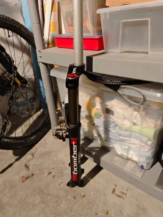 Horquilla de bicicleta Marzochi Bomber Com Eta de 120 de recorrido con bombing para ruedas de 26 pulgadas. Está en buen estado, lista para usar. - Modelo Bomber. - Color negro y rojo.