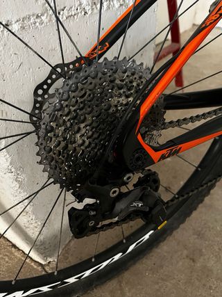 Vendo KTM de carbono en buen estado. Talla M Cambio Deore XT de 11 velocidades. Maneta de cambio Deore XT Monoplato. Frenos level Horquilla Rockshock brain.