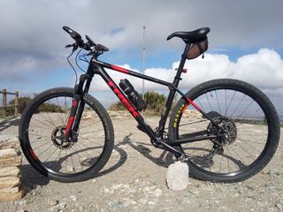 Bicicleta de montaña Trek Top Fuel 9.8, cuadro completo de carbono de talla L -Cuadro de carbono. -Amortiguación central Fox Kashima. -Ruedas Bontrager Kove elite 23 carbono -Manillar Bontrager xxx carbono -Tija carbono Cubierta XR2 Bontrager nuevas montadas - Frenos sram guide 4 pistones con pastillas nuevas -Bielas de carbono con pedales automáticos -Horquilla Fox performance 32 y Fox detrás (doble posición de bloqueo) -Cambio Sram GX 12 v -Cadena cambiada hace 3 meses y monoplato ovalado Bici montada en full carbono con mucho cuidado y mimo, La vendo porque me compré una mejor. Cualquier cosa no dude en preguntar.