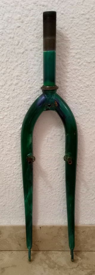 Horquilla de Rosca para Bicicletas de 26 Pulgadas y dirección de Una Pulgada. El largo del tubo de dirección mide 13 cm. Estado general bueno pero hay que cambiar uno de los tetones. Entrego en mano en Castellón Capital o hago Wallapop envío.