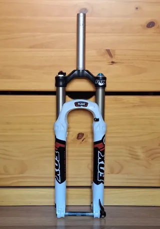 Horquilla de suspensión Fox 32 F-100 FIT RL. - Modelo F-100. - Tecnología FIT RL. - Color blanco y negro. Tiene el desgaste del baño de la barra que se ve en la foto, por el resto está bien.