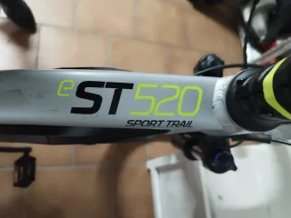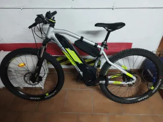 Bicicleta eléctrica Rockrider ST 520 con ruedas de 27.5 pulgadas. Año 2021. Talla S. -SOLO 872 KILÓMETROS de reestreno. - Cuadro de aluminio ligero. - Sistema de asistencia eléctrica integrado. - Horquilla delantera con suspensión. - Frenos de disco. - Neumáticos todoterreno. - Tija sillín telescópica. * Se vende por no usar.