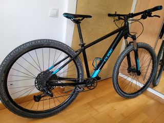 Talla: M De marzo de 2021 MTB Cube de aluminio ligero con cableado interno Horquilla RockShox Judy 100mm recorrido bloque remoto manillar Transmision SRAM eagle 12 velocidades cassette 10/50 y Plato 32 Frenos Shimano hidráulicos Se la compré a mi pareja y salió 4 veces contadas con ella...