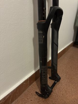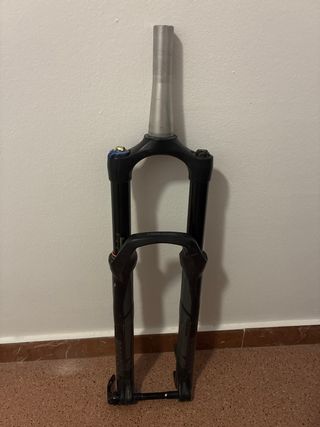 Horquilla Suntour de 29 pulgadas para bicicleta de montaña. Está en buen estado, con algunas marcas de uso. - Modelo Suntour. - Para ruedas de 29 pulgadas. - De muelle. - Tubo de 16 cm.