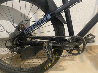 Bici muy sólida, con componentes fiables y resistentes. Ideal para quien busca algo robusto, ágil y divertido, tanto para street/dirt como para salidas de enduro lijero. Componentes principales • Cuadro Darmont Street Fighter (2020). • Horquilla RockShox Lyric 26” • Eje delantero pasante 20 mm con buje NS-bike • Recorrido ajustable 115–160 mm • Service completo hecho recientemente (retenes y aceite) • Transmisión Shimano ZEE – 10 velocidades • Monoplato • Bielas Shimano ZEE • Frenos Shimano • Manetas diferentes • Pinzas de doble pistón • Disco delantero 180 mm • Disco trasero 160 mm • Ruedas 26”