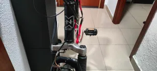 Bicicleta de montaña de carbono talla M con un diseño moderno y deportivo. Ideal para rutas y senderos. Peso entre 10 y 12 kg - Cuadro de carbono ligero. - Ruedas de 29 pulgadas. - Frenos de disco shimano. - Horquilla delantera rock shox judy - Cambio trasero sram NX - Mono plato con 12 velocidades Pedales opcionales Botelleros opcionales