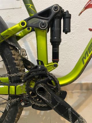 Horquilla RockShox Yari RC Air 170 mm Amortiguador RockShox Super Deluxe R. Transmisión SRAM NX Eagle 12v completa (bielas Descendant, plato 32D, cassette 11–50). Frenos Shimano MT-520 4 pistones con discos 203/180. Ruedas DT Swiss EX 1700 Boost 27,5” (upgrade) con Armour y neumáticos Maxxis Minion DHR II. Tija telescópica TranzX 125 mm nueva. Usada para enduro, anda perfecta aunque tiene algunas marcas de uso (ultimas fotos).