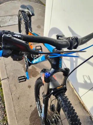 Bicicleta de enduro GT Force en excelentes condiciones. Esta echa mullet 29 adelante 27,5 atras. - Cuadro de carbono. - Horquilla Rock shox pile 29. - Amortiguador Fox dphx kashima. - Grupo SRAM 1x12v plato garbaruk 32D. - Llantas progress mt plus y neumatico Maxxis. - Pinzas shimano saint doble piston con manetas xt. - Manillar carbono de 35mm renthal - Tija telescopica rock shox reverb -pintada en uves bikes con tipicas marcas de uso, tiene vinilo protector y protector de carbono echo a medida