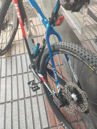 Bicicleta de montaña Cube con cuadro de carbono y ruedas de 29 pulgadas. Todos los componentes Xtr. Cubiertas nuevas Talla L Muy cuidada por persona mayor que se pasa a eléctrica. - Cuadro de carbono. - Ruedas de 29 pulgadas. - Frenos de disco xtr - Horquilla de suspensión.