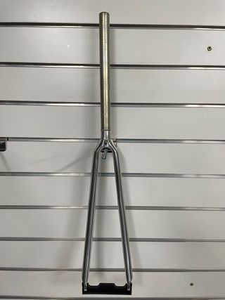 Horquilla de acero para bicicleta con diseño recto y rosca. - Longitud del tubo de 230mm. - Material: Acero.