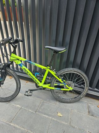 Bicicleta infantil Decathlon Rockrider de 20 pulgadas. - Color verde lima con detalles azules. - Ruedas todoterreno. - Sillín ajustable. - Horquilla amortiguación delantera delantera. - Muy buen estado