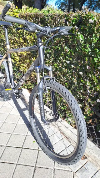 Bici en muy buen estado. Cambia y frena perfectamente. Es una bici sencilla pero perfecta para iniciarse en el MTB o para desplazamientos urbanos. También se le puede poner porta bultos ya que cuenta con roscas en el cuadro. Se trata de una Rockrider 5.2 con ciertas mejoras. Se le cambió la horquilla, los frenos, el cambio y, lógicamente, las cubiertas por desgaste. Con esta bici se han hecho desde rutas por la sierra hasta viajes con alforjas. Es cómoda, polivalente, fiable y sencilla de mantener.