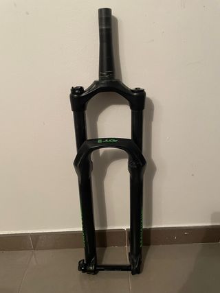 Horquilla SID BRAIN 100mm. Revisada recientenente, funcionamiento perfecto. Tubo cortado a 14,5cm, yo llevaba un espaciador y luego el manillar integrado. Perfecto quedaba. Peso sobre 1.580gr (te ahorras el mando del bloqueo, asique el peso está muy bien). La cambie porque el color de la nueva bici no me gustaba el negro (asi de idiotas estamos).