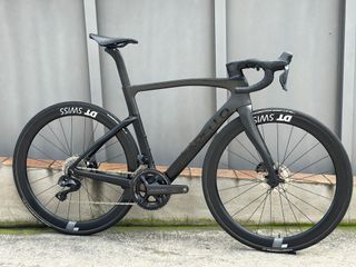 La marca Transalpina en la vanguardia en cuanto a innovación y tecnología. La calidad y el trenzados de sus fibras de carbono están a un nivel sin competencia excelencia con unos acabados sublimes. - Cuadro de carbono alto módulo con excelente geometría. La conducción de la bici es como ir por raíles. Su horquilla onda es sencillamente espectacular. - Grupo Shimano Ultegra Di2 12v. - Manillar Integrado de carbono Most. - Ruedas de carbono DTSWISS 1400 ERC