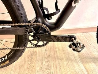 Bicicleta KTM Scarp Master montada a la carta. Talla s/m -bielas xx1 carbono con potenciometro quarq araña - Cuadro de carbono. Premium exonic - Montaje personalizado. - Horquilla Fox 32 SC. - Amortiguador Fox Float DPS. - Frenos Shimano XT. - Transmisión sram axs - Ruedas carbono bujes dt240 - Cubiertas Maxxis - Tija carbono y sillin tune speednedle -manillar integrado carbono syncros